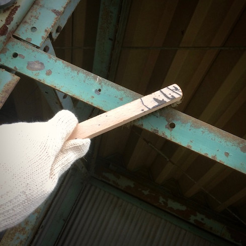 ワイヤーブラシで鉄部表面で剥がれかけているサビを落とします。
